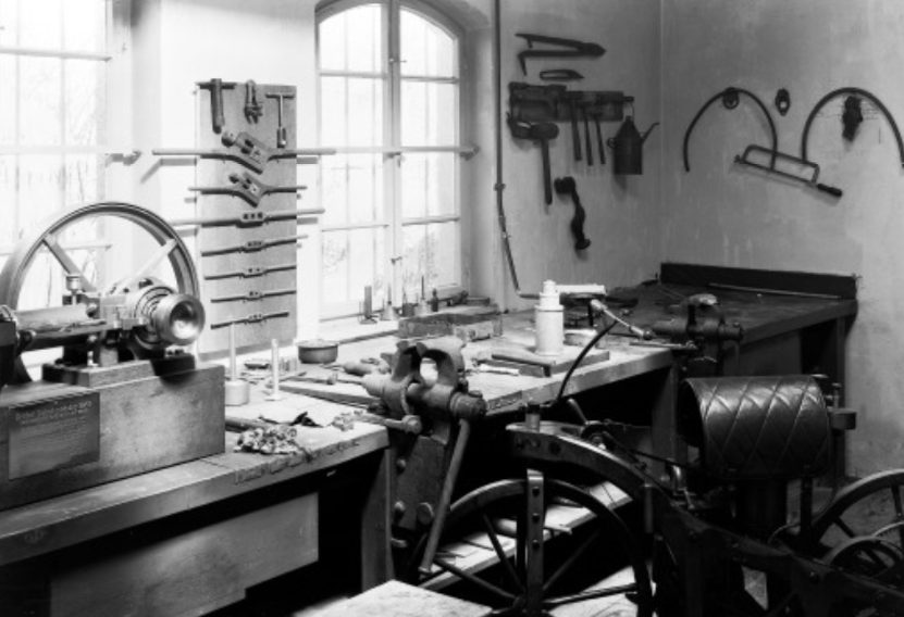 Au printemps 1882, Gottlieb Daimler acquiert une villa à Cannstatt, en banlieue de Stuttgart. Il y fait aussitôt construire une annexe pour y installer un atelier expérimental et fait élargir les allées du jardin pour les transformer en pistes d’essai ! Il y commence une collaboration fructueuse avec Wilhelm Maybach consacrée au développement de moteurs à combustion interne légers et compacts, destinés à équiper non seulement des machines industrielles, mais aussi des véhicules mobiles.