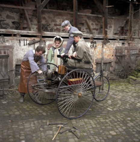 Leur union est cependant marquée de moments difficiles, notamment lorsque leur atelier est saisi par des huissiers en 1877. C’est dans un contexte de difficultés financières et de contraintes professionnelles importantes que Carl Benz entreprend, en 1878, de travailler sur le moteur à gaz : il voit dans le moteur à combustion interne non seulement une solution innovante pour entraîner des machines, mais également une étape cruciale vers la concrétisation de son rêve : créer un véhicule autonome pour remplacer les attelages hippomobiles.