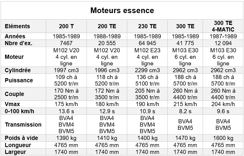Caractéristiques techniques du break W124 (Diesel & Essence)