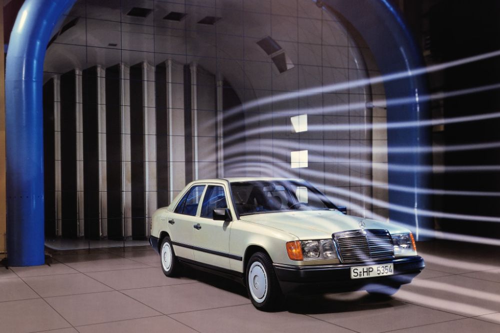 Sous la direction de Bruno Sacco, alors responsable du design, la W124 affiche un style sobre et élégant, marqué par des lignes tendues et une aérodynamique soignée grâce à des angles et des arêtes arrondis. Le coefficient de traînée descend jusqu’à 0,29 — un exploit pour une berline de cette taille en 1984. Ce design n’a rien d’un simple exercice de style : il découle d’une approche rationnelle, fidèle au principe cher à Stuttgart : « la forme suit la fonction ».