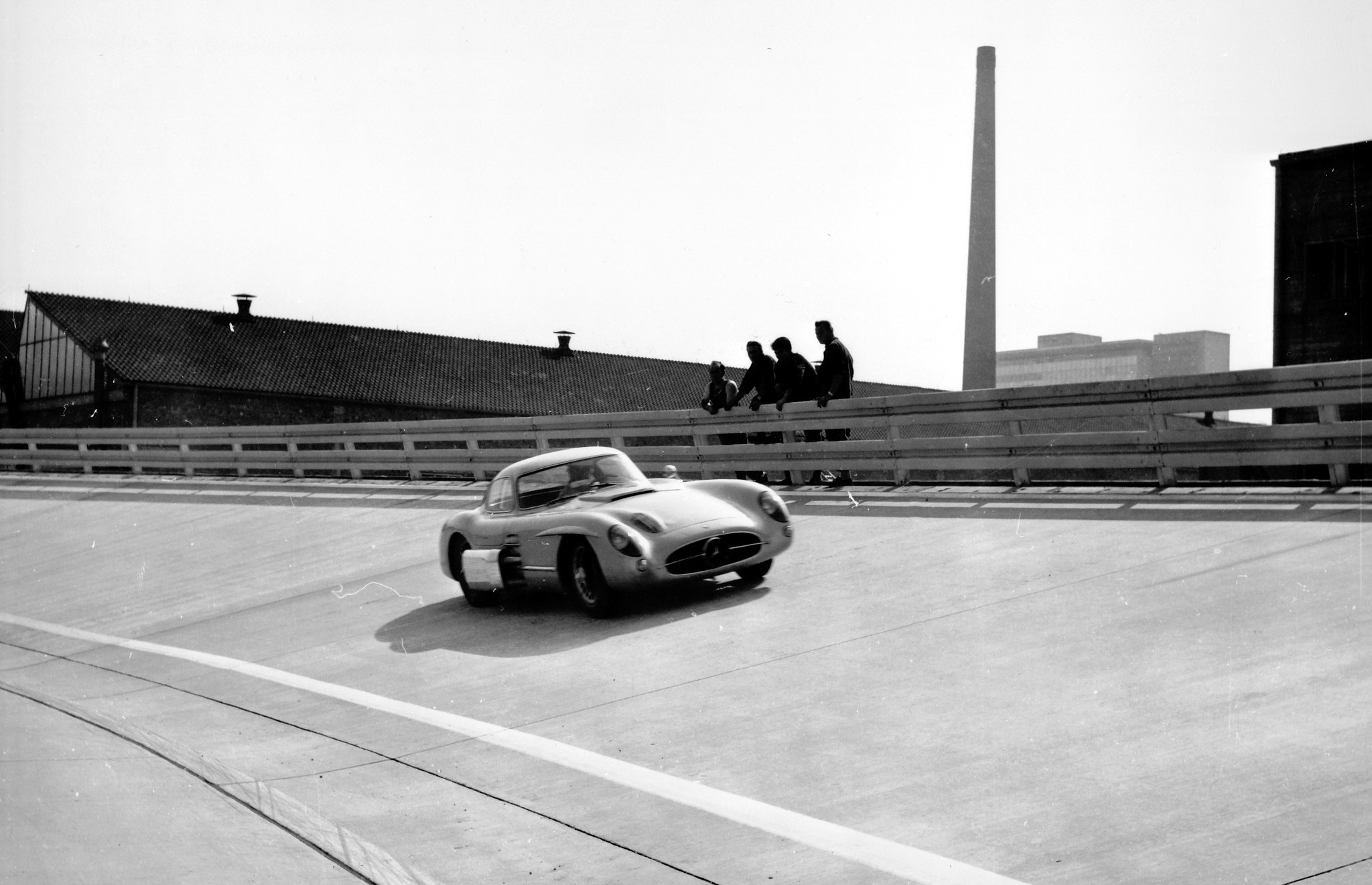 Néanmoins, la 300 SLR Coupé n’a pas été laissée à l’abandon puisque son concepteur en chef, Rudolf Uhlenhaut, utilisait ce bolide de 310 cv pour se rendre quotidiennement à son bureau. Avec une vitesse de pointe de 284 km/h, nul doute que le trajet domicile-travail était rapide ! Par ailleurs, lui-même excellent pilote, Rudolf Uhlenhaut a parcouru des distances incroyables lors de nombreux voyages à travers l’Europe dans l’un des deux exemplaires de la voiture. Cela s’est avéré être une démonstration impressionnante de la fiabilité et de la grande praticité au quotidien de cette voiture de compétition haut de gamme de plus de 300 ch. Une concession faite pour l’usage routier était l’énorme silencieux d’échappement installé sur le côté droit, qui a contribué à réduire les effets sonores perçants de la W196 de F1.