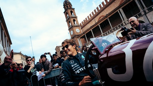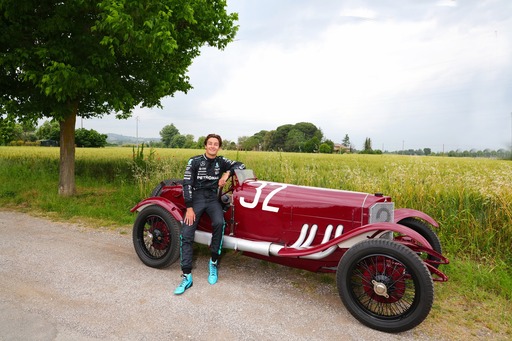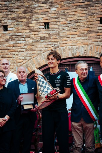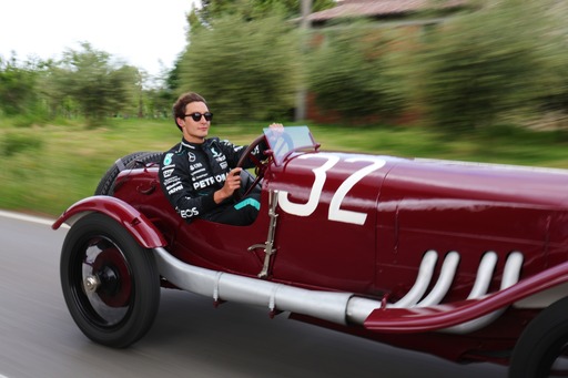 George Russell pilote une Mercedes centenaire et reçoit le Trofeo Bandini Award à Brisighella