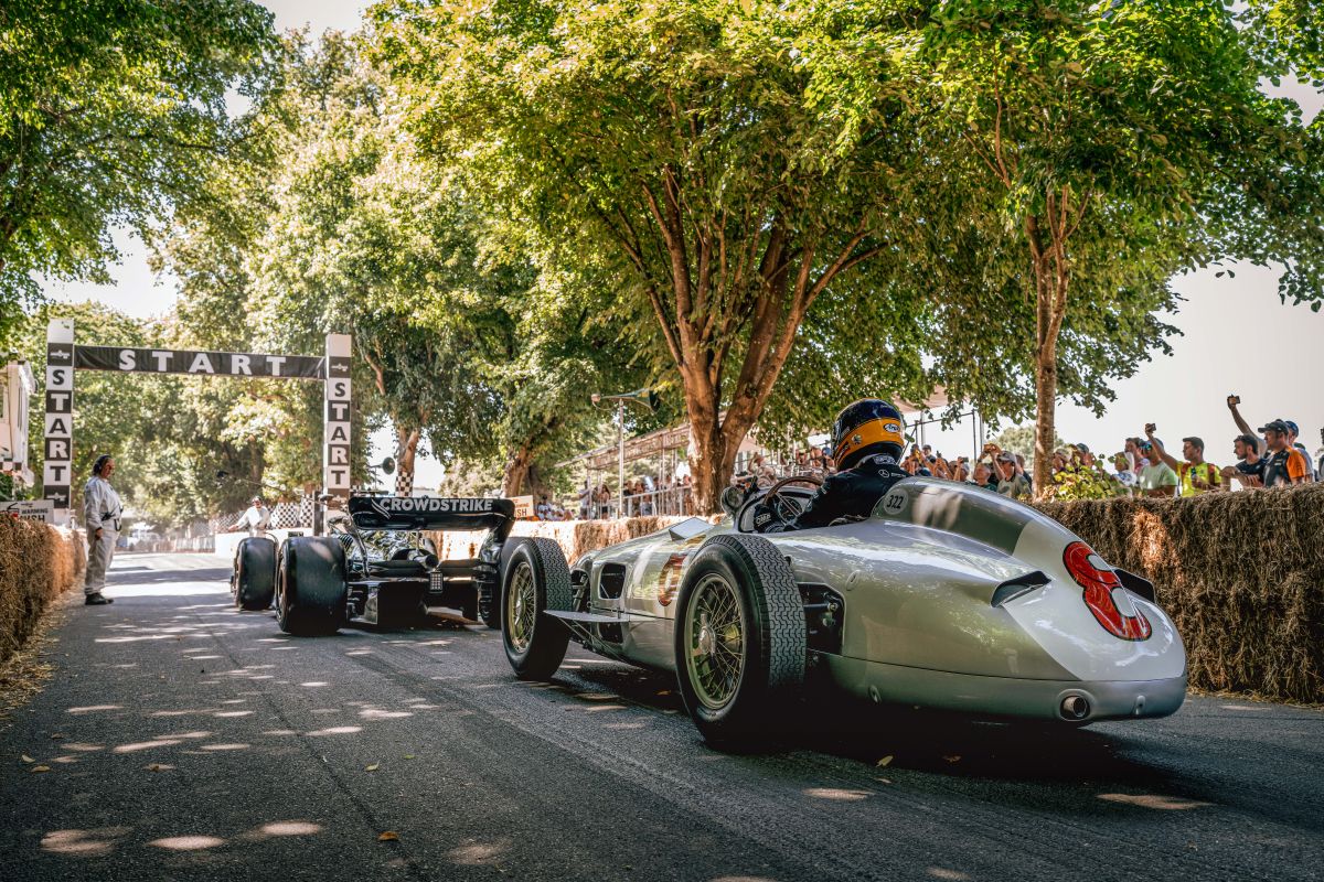 Le Festival of Speed de Goodwood, considéré comme la plus grande garden-party motorisée au monde, a une fois de plus tenu ses promesses. Dans l’allée mythique de 1,86 km serpentant jusqu’à Goodwood House, Mercedes-Benz Classic a aligné un plateau exceptionnel de cinq Flèches d’Argent issues de plusieurs décennies.
